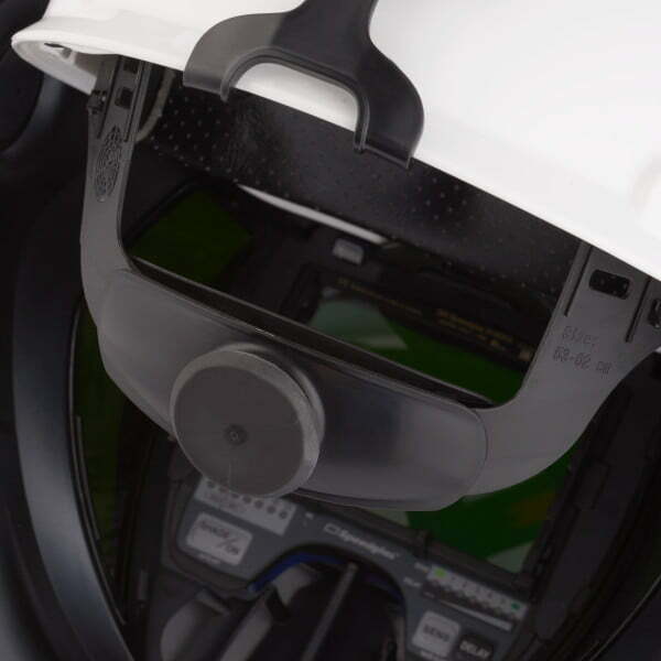 Pe măsură ce atașați și detașați viziera de sudură, nu trebuie să vă îndepărtați casca de protecție – astfel încât capul dumneavoastră este protejat în orice moment. Geamurile laterale (nuanța 5) vă pot ajuta la mărirea câmpului vizual, iar aerul expirat este canalizat prin orificiile laterale ale căștilor, ceea ce poate reduce aburirea gemului interior.