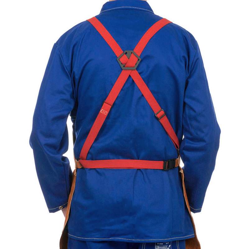 Acest sort sudura din piele Lava Brown, fara pieptar, are toate punctele sensibile la impact, intarite cu capse si bineinteles cu o cusatura dubla. Elementele metalice prezinta izolare electrica ce o face mai sigura si este fabricata in conformitate cu norma EN ISO 11611:2007 CLASS 2/A1 si certificat TÜV.